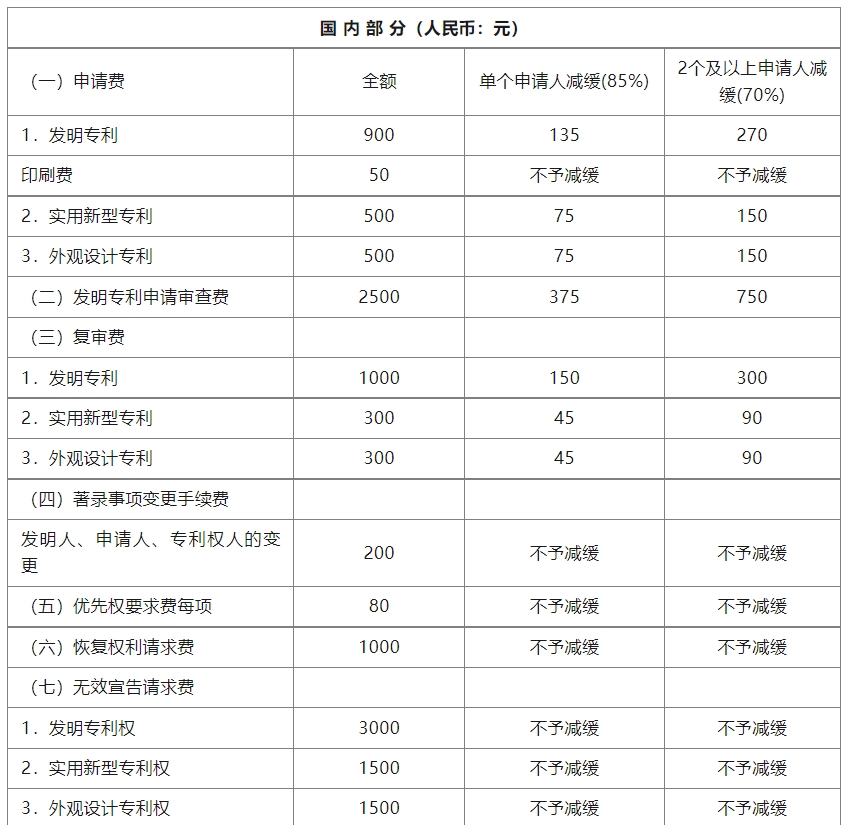 • 申请费(不包括公布印刷费、申请附加费)